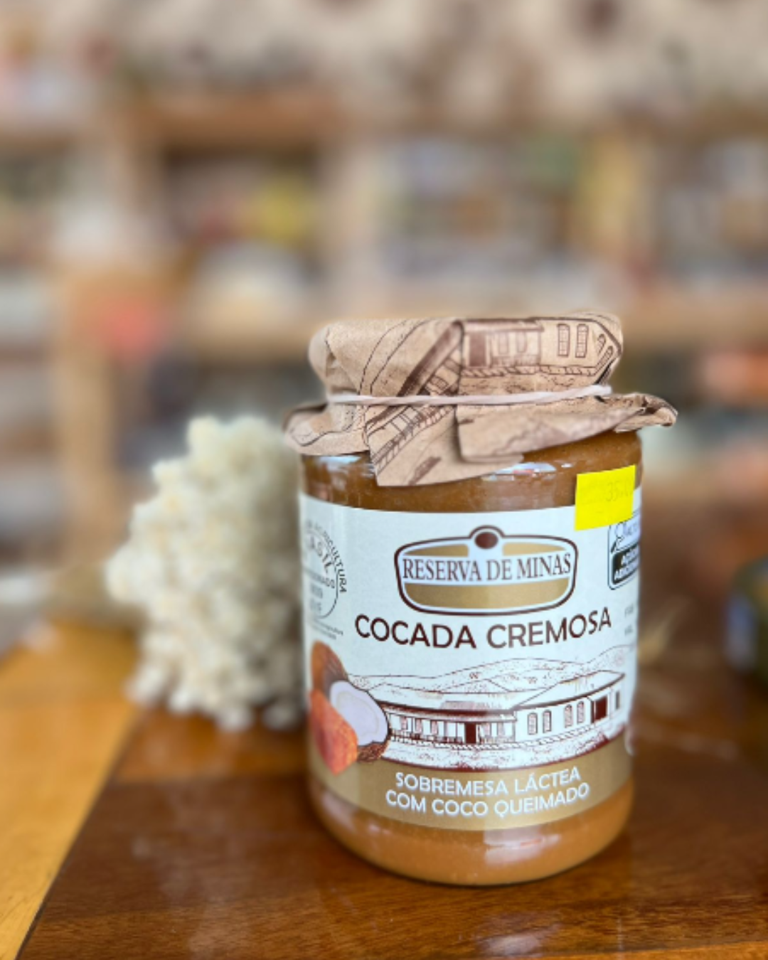 A Cocada Cremosa com Brigadeiro Reserva de Minas 650g é uma criação exclusiva que combina dois dos mais amados doces brasileiros em uma experiência única. Esta cocada oferece a textura suave e o sabor intenso do coco fresco, misturado ao brigadeiro cremoso e achocolatado, resultando em uma sobremesa rica e cheia de personalidade.