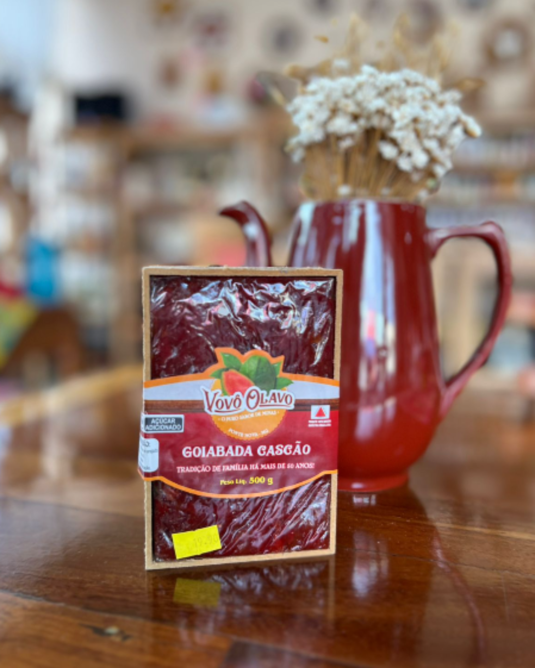 A Goiabada Cascão Vovô Olavo é feita com goiabas selecionadas, seguindo uma receita tradicional que preserva o sabor e a textura rústica da verdadeira goiabada cascão. Nessa versão de 500g, o doce vem em uma elegante caixa de madeira, valorizando ainda mais o produto e tornando-o perfeito para presentes, cestas gourmet e ocasiões especiais.